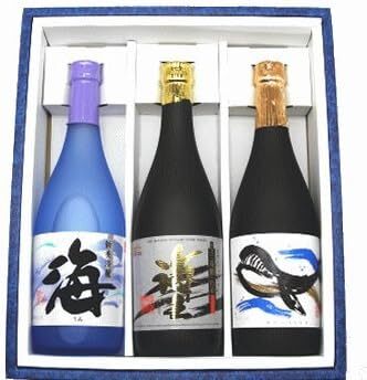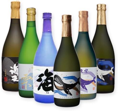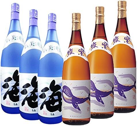 黒麴特有の香りとキリリと絞まった味・華やかな香りと口当たりが特徴の白くじら・綾紫芋独特のアントシアニン系の香りと味わいがしっかりと広がる。柔らかな甘みがある綾紫・各1本・海3本の6本呑み比べセット。